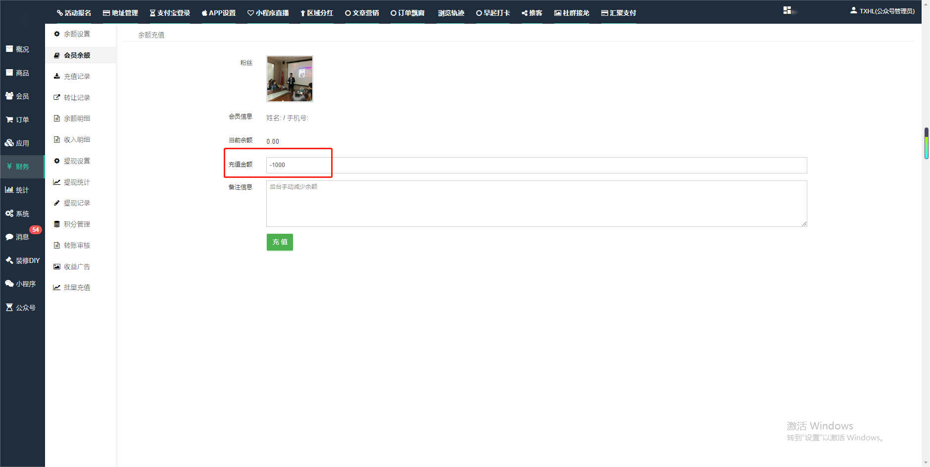 目录 搜索 展开 一、前期准备资料二、数字乡村码-上线操作指南1、服务号的申请流程及认证2、申请小程序流程3、开放平台绑定小程序和公众号三、数字乡村码-系统操作数字乡村码系统管理-概况数字乡村码-商品管理1、发布商品2、商品列表3、商品表单4、商品分类5、品牌管理6、配送模板7、评论管理8、优惠券管理9、商品标签10、退货地址设置11、满额优惠12、批量操作13、配送方式14、基础设置15、商品隐藏四、数字乡村码-会员管理1、全部会员2、会员等级3、会员分组4、资格申请5、会员设置6、推广中心设置7、会员邀请码8、会员关系链修改关系链修改记录9、会员合并记录10、账号注销管理11、会员设置中心五、数字乡村码-订单管理1、订单管理列表2、订单处理流程3、订单状态4、订单修改价格5、订单退款退货6、多包裹发货7、批量发货订单操作步骤8、催发货订单9、物流查询六、数字乡村码-财务管理1、余额设置2、会员余额3、充值记录4、转让记录5、余额明细6、收入明细7、提现设置8、提现统计9、积分管理10、转账审核11、收益广告12、批量充值七、数字乡村码-系统管理1、商城入口2、商城设置①、商城设置②、订单设置③、物流查询④、短信⑤、联系方式⑥、分类⑦、优惠券⑧、分享⑨、幻灯片⑩、广告位⑫、地图设置3、交易设置4、微信模板消息自定义消息模板(新版)自定义消息模板(旧版)小程序消息模板公众号模板消息变更公告5、语言设置6、权限管理7、多媒体管理八、数字乡村码-消息管理九、数字乡村码-应用管理十、数字乡村码系统-数据统计十一、数字乡村码-页面装修DIY1、模板管理2、店铺页面3、顶部导航4、底部导航5、DIY模板市场6、首屏广告7、基础设置8、装修DIY尺寸建议十二、供应商功能插件操作指南1、供应商2、门店-收银台门店申请和使用步骤门店管理①、门店-收银台 营销设置②、门店-收银台 分润设置门店分类门店申请门店审核门店商品门店商品订单收银台订单数据统计核销员基础设置默认设置门店装修3、微社区4、会务活动十三、营销插件操作指南活动报名提货卡新人奖微店问卷调查积分视频分享1、视频分享基础设置2、视频分享发现管理3、视频分享分类管理4、视频分享评论管理5、视频分享分红记录6、视频分享短视频中心每日红包幸运大抽奖签到优惠券二维码任务奖励优惠劵文章音频文章付费文章限时购新海报拓客卡操作流程积分活动素材中心视频红包十四、入驻门店应用类1、门店预约2、附近商品3、门店定位设置4、门店控制5、门店满额包邮6、门店满额减7、导入商品8、门店搜索9、门店股东10、核销券11、多门店核销1、商城后台设置2、前端功能演示十五、常见问题1、后台登录密码修改流程2、会员-余额,积分,后台如何进行充值与扣除3、如何修改上下级关系4、一种万能的获取商城小程序路径的方法 暂无相关搜索结果! 阅读次数:2159 本文档使用 模王系统 发布 2、会员-余额,积分,后台如何进行充值与扣除 会员-余额,积分,后台如何进行充值与扣除一.如何进行余额充值-扣除1.财务-会员余额-搜索会员昵称-右边点击充值余额2.扣除余额,只需要在充值金额前加上 - 号;比如充值-100,等于扣除100余额二,如何手动充值积分-扣除积分(充值与扣除逻辑跟余额是一样的)文档更新时间: 2024-01-05 14:28 作者:链上旅行