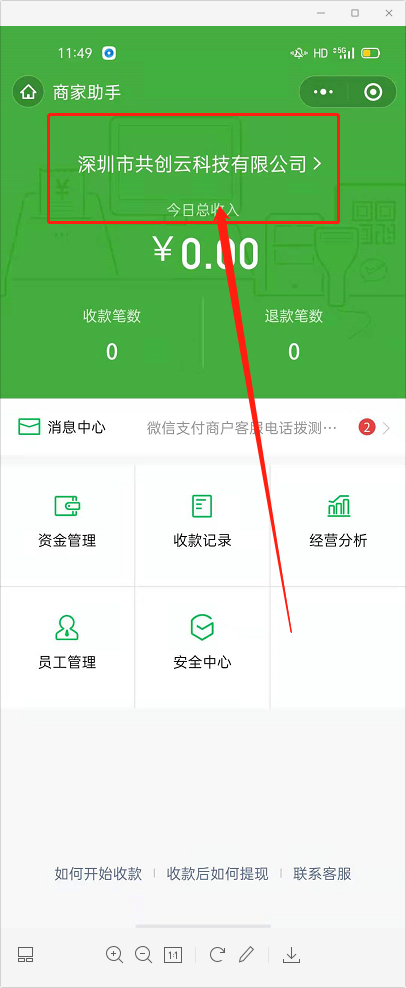 4.点击-我的账户-我是商家-授权商户号登录-点击公司名称-收款通知-开启公众号通知-语音播报通知。