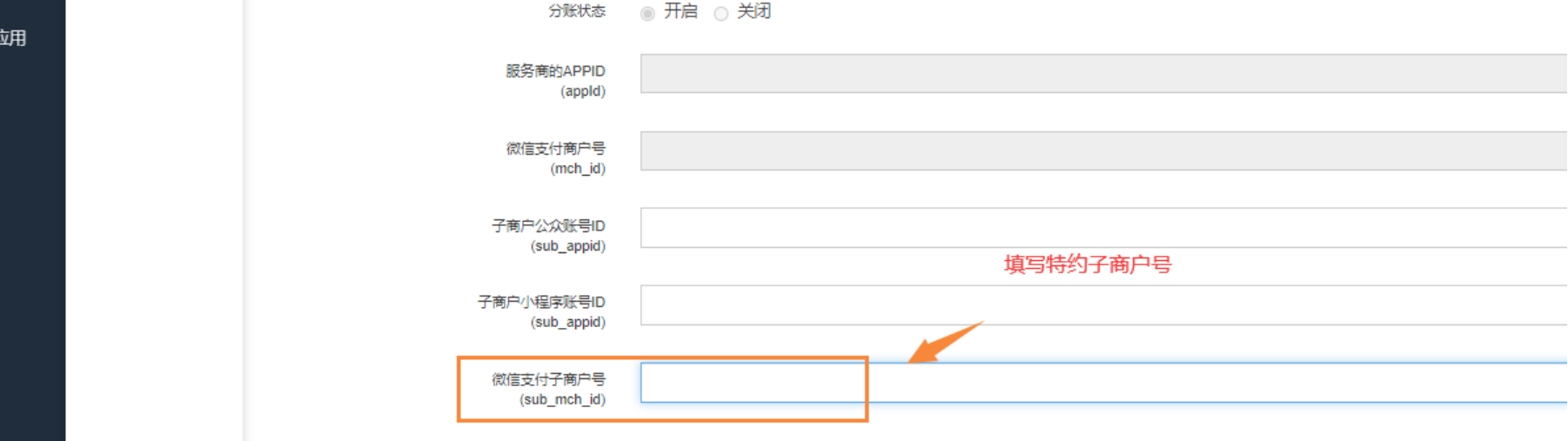 服务商的小程序appid:当前小程序的APPid,小程序也需要配置好服务商支付,有就填,没弄好小程序的就不用填,留空。
