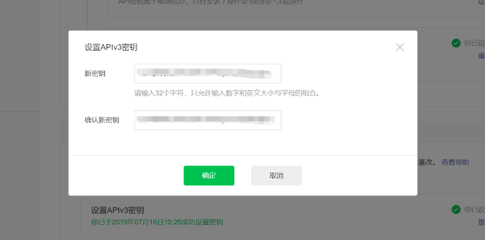 如果共用微信公众号的微信商户号,填写同一个APIV3密钥,若不是,登录各自微信商户平台设置。
