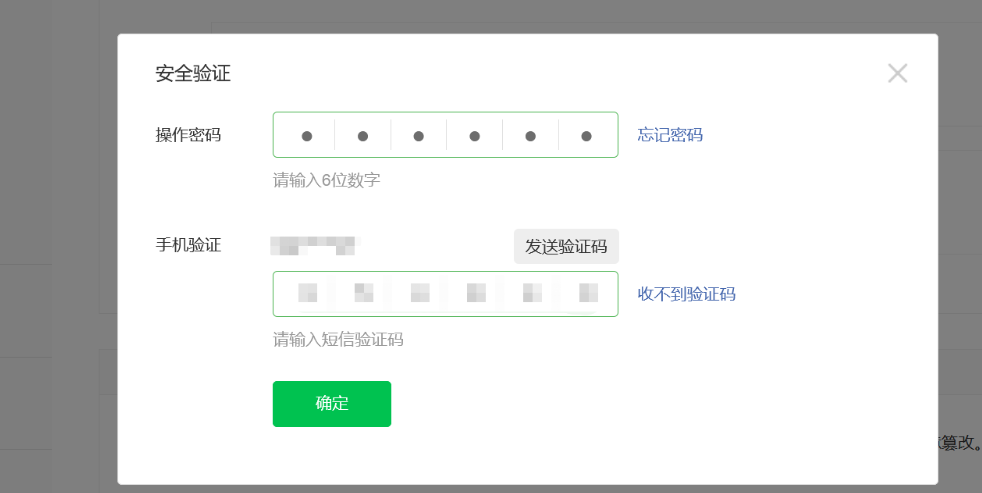 输入短信验证码,点击“确认”即设置成功。