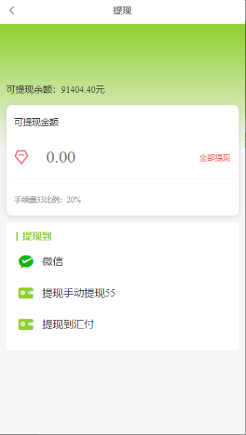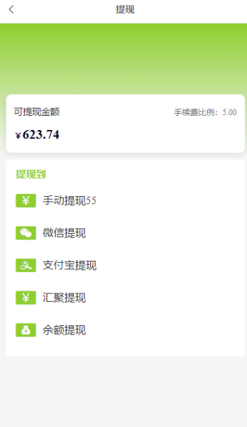注意:我的提现页面--提现金额是会员申请时的金额,没有扣除手续费;